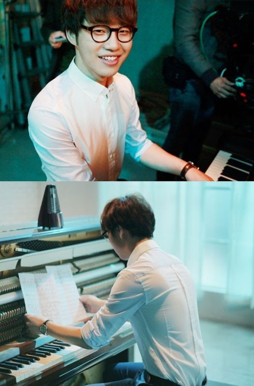 사진 속 홍대광은 셔츠를 입고 피아노 앞에 앉아 포즈를 취하고 있다.
