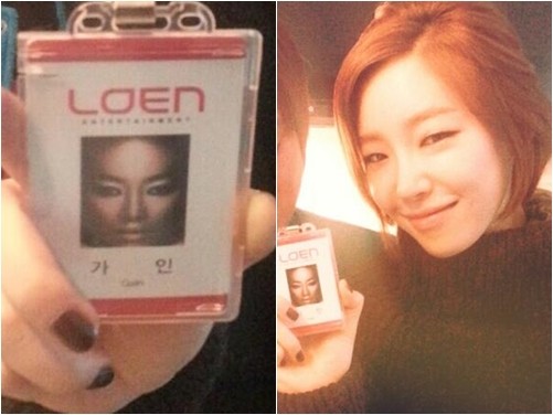 공개된 사진에는 가인이라고 적힌 로엔 엔터테인먼트 사원증이 담겨 있다. 그런데 과도한 스모키 화장을 한 모습이라 가인이 맞는지 의심스러울 정도다.
