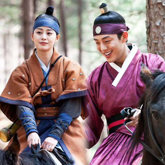 공개된 사진은 이순(유아인)이 남장한 옥정(김태희)과 함께 말을 타고 이동하는 장면으로 이순의 얼굴에는 웃음꽃이 활짝 폈다.