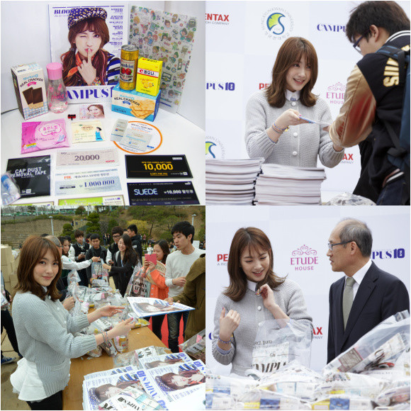 이미 한 시간여 전부터 성균관대 금잔디 광장은 강지영이 직접 나눠주는 어택패키지와 그녀가 직접 표지모델을 진행한 <캠퍼스텐> 4월호를 받기 위해 길게 늘어선 줄로 가득 채워져 인기를 실감하게 했다.