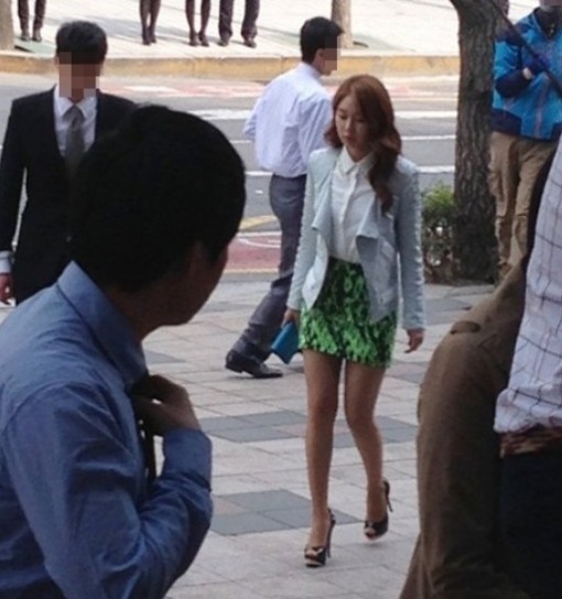 공개된 사진은 KBS2 주말드라마 <최고다 이순신> 촬영 중인 유인나의 모습을 찍은 것이다. 사진 속 유인나는 녹색 미니스커트와 화이트 블라우스에 아쿠아 블루 재킷을 매치해 상큼한 봄 패션을 완성시켰다.