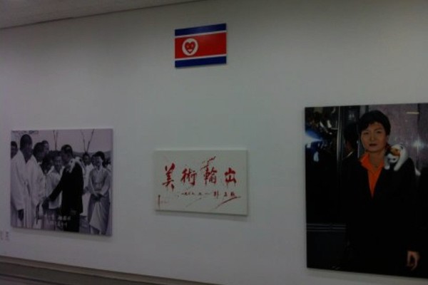 5. 투어의 마지막 코스인 대구예술발전소에서 찍은 일명, 인공기사진은 북한의 국기를 패러디한 팝아트작가 강영민의 ‘심공기’란 작품으로서 북한에 사랑과 평화를 전달한다는 메시지가 있습니다. 또한 맞은 편 벽에는 태극기를 패러디한 작품도 걸려 있습니다. 미디어워치의 변희재 대표에게 작품에 대한 설명을 충분히 전달했는데도 두 매체는 계속 인공기로 엮으며 박대통령 내외분을 모욕하기 위함이라고 몰아가고 있습니다.