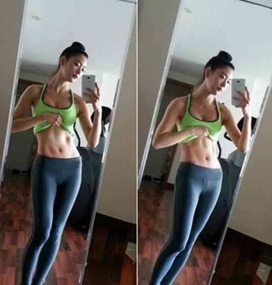 공개된 사진 속 클라라는 연두색 민소매 운동복 상의를 들어올린 채 거울에 비친 자신의 모습을 휴대폰으로 촬영하고 있다. 특히, 탄탄한 11자 복근과 몸매가 그대로 드러나는 타이즈 하의를 입고 군살 하나 없는 S라인을 자랑했다.