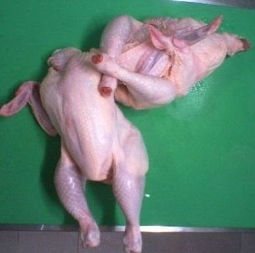 공개된 사진에는 이종격투기 기술 중 하나인 암바를 걸고 있는 듯한 자세를 취하고 있는 생닭 두 마리가 담겨 있다. 특히, 한번 걸리면 꼼짝 못할 것 같은 암바 자세와 디테일하게 묘사한 모습이 눈길을 끈다.
