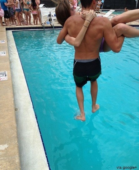 공개된 사진에는 한 남성이 연인으로 보이는 여성을 안고 물 위에 서 있어 보는 이들의 놀라움을 자아냈다.
