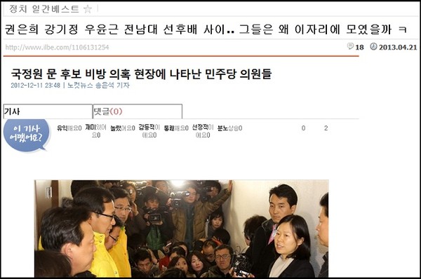 한편 권 과장은 중앙일보 기자와 만나 “위에서 국정원 여직원 2차 조사 후 보도자료에 기재된 것 외에는 모른다고 하라는 지시가 있었다. ‘한마디만 더 하면 가만두지 않겠다’고도 했다”고 말했다고 했으며, 이성한 청장이 감찰 가능성을 언급한 것에 대해서는 “개선 의지가 엿보이지 않는다고밖에…”라는 대답을 했다고 한다. 좌익패당의 대변자가 되는 듯한 언행을 해대는 수사과장에게 경찰의 지휘부가 ‘보도자료에 있는 것만 말하라’고 지시하는 것은 상식이 아닌가? 정상적인 국가의 경찰이라면 권은희와 같이 외부에서 특채되어서 조직과 상식을 모르고 저렇게 억지와 깽판을 치는 수사과장은 벌써 해임조치되지 않았겠는가? 권은희의 특정패당 부역행위는 문희상 민통당 비대위원장의 “‘광주의 딸’, 권 과장을 민주당은 반드시 지키겠다”는 말로써 충분히 증명된다. 국정원 여직원 사건의 본질은 정치권, 언론계, 시민역역, 그리고 경검찰 내의 호남세력이 ‘박근혜는 부정당선 됐다’는 선동극이 아닌가? 광주가 국정원 죽이기의 근원지인가?