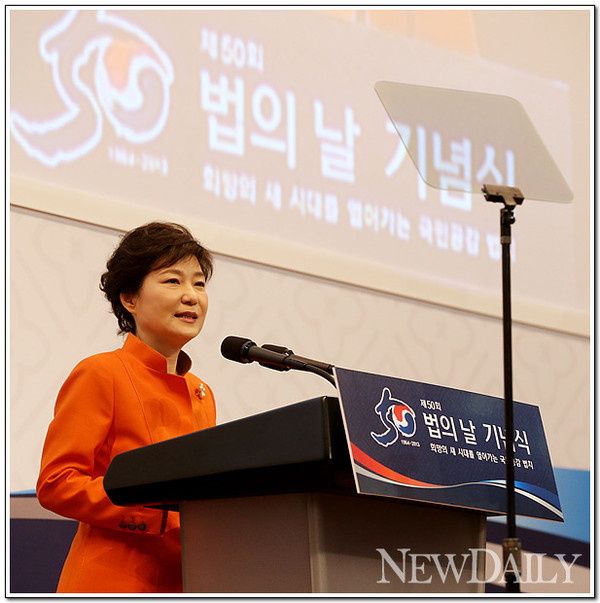 박 대통령은 이날 서초동 대법원 강당에서 열린 [제50회 법의 날] 기념식에 참석해