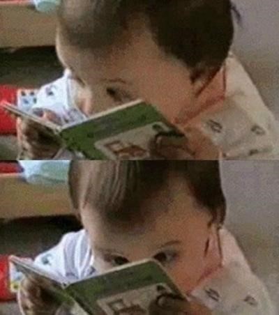 공개된 사진에는 귀여운 어린 아기가 책을 보고 있는 모습이 담겨 있다. 특히, 이 아기는 얼굴에 책을 바짝 갖다대고 다급한 표정으로 뚫어져라 보고 있는 모습이 마치 시험 보기 5분전 우리의 모습을 연상시킨다.