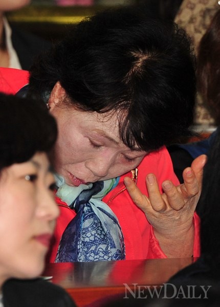29일 오전 서울 여의도 국회 헌정기념관에서 열린 [제10회 북한자유주간 개막식]에 참석한 탈북자가 남북청년들의 편지를 듣고 눈물을 흘리고 있다.