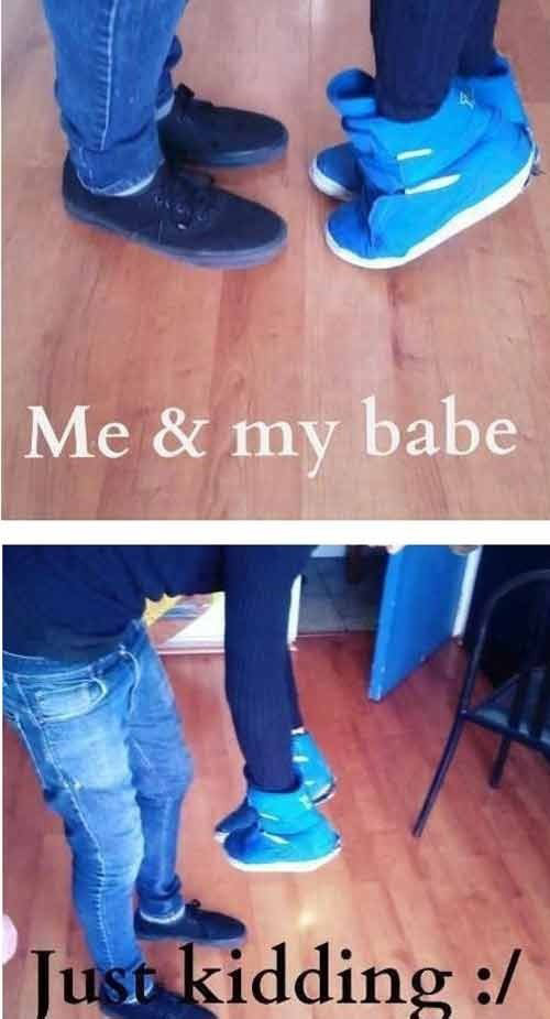 검정색 신발을 신은 한 남성이 허리를 굽힌 채 자신의 팔에 신발을 끼운 것으로 여자친구의 발이 아닌, 1인 2역을 소화한 외로운 솔로 사진이었던 것.