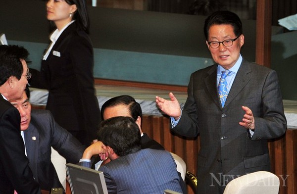문희상 비대위원장과 박기춘 원내대표, 박지원 전 원내대표 등이