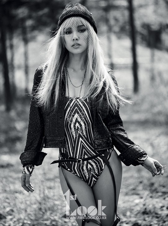 특히, 애나멜 소재의 검정 상의와 몸매의 S라인이 드러나는 수영복 스타일의 보디슈트, 가터 벨트를 연상케 하는 벨트 스타일링으로 글래머러스한 몸매를 여과없이 드러냈다. 또, 섹시한 록스타의 도발적인 매력을 넘어서 치명적인 퇴폐미까지 강하게 이끌어냈다.