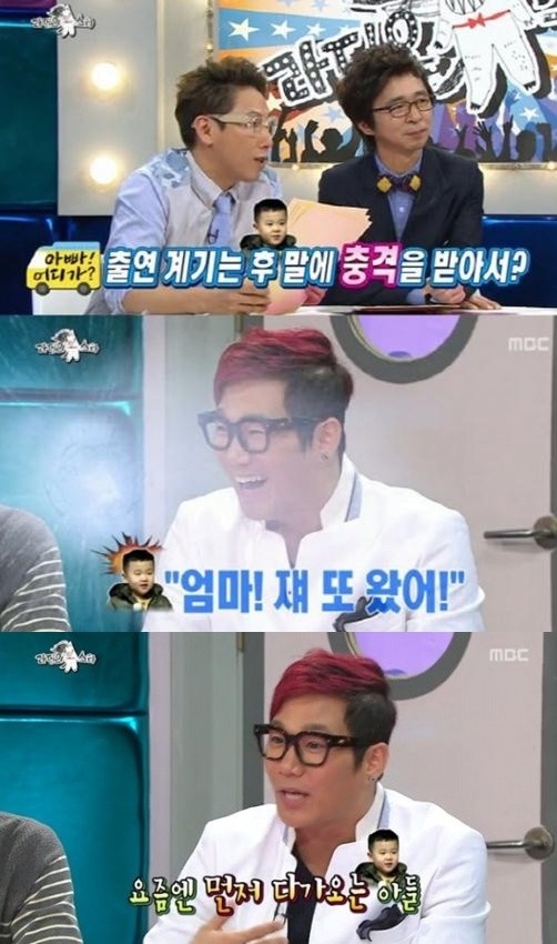 이어 <아빠 어디가> 출연 결정을 한 이유에 대해 “집에 늦게 귀가해 가족들을 깨울까봐 혼자 잤는데, 윤후가 자고 있는 나에게 ‘엄마 쟤 또 왔어’라는 말에 충격받았다”고 덧붙였다.