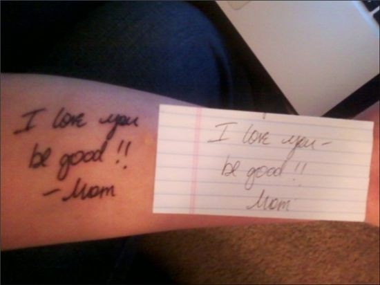 마음이 뭉클해지는 문신의 주인공은 20살 미국 여대생으로 알려졌다. 이 여성은 지난 2011년 갑작스럽게 심장마비로 숨진 어머니가 남긴 마지막 쪽지를 그대로 자신의 팔에 새겼던 것.