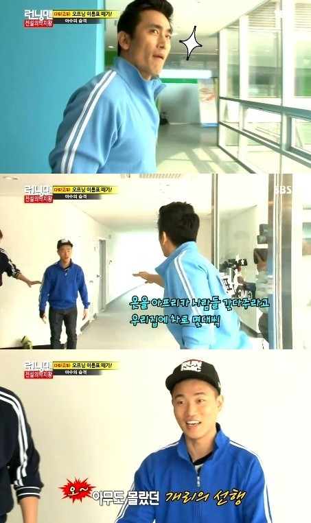 이날 방송 초반 이름표 떼기 레이스에서 차인표는 김종국, 개리, 이광수가 모인 곳으로 향했다. 차인표는 개리를 발견하자 “개리 씨, 옷을 아프리카 사람들에게 가져다주라고. 우리 집에 차로 몇 대씩…”이라며 개리의 선행을 알렸다.