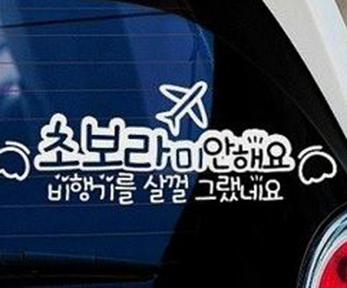 공개된 사진에는 자동차 뒷유리에 붙어 있는 초보운전의 문구가 담겨 있다. 문구에는 “초보라 미안해요, 비행기를 살 껄 그랬네요”라고 적어 웃음을 자아냈다.