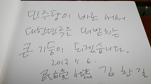 김한길이 민주당 대표로 선출된 것은 5월 4일이다.
