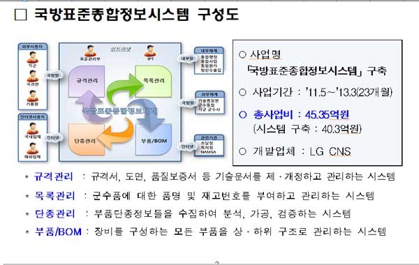 <국방표준시스템>은 45억 3,500만 원을 들여 2년 동안 구축한 시스템이다.