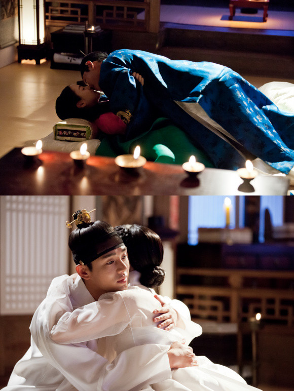 이번에 공개된 사진은 촛불과 은은한 조명이 켜진 방 안에서 유아인이 김태희를 눕혀 키스하는 모습으로 궁에서 쫓겨난 옥정이 어떻게 이순과 재회하는지 합방의 장소가 어디인지 궁금증을 증폭시키고 있다.