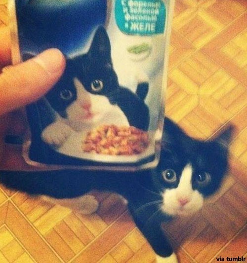 공개된 사진에는 자신과 함깨 생활하는 고양이와 사료 표지 모델 고양이가 쌍둥이처럼 닮은 모습이 눈길을 끌고있다.사진 속 고양이는 털의 색, 얼굴에 있는 무늬와 발에 있는 흰색 무늬까지 신기할 정도로 비슷하며 특히 생활하는 고양이의 놀란 눈빛이 웃음을 자아내고 있다.