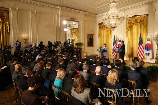 오바마 대통령에게 질문을 던질 기회로 비춰지는 측면도 있다.한국 대통령을 세워두고 오로지 미국 대통령만을 위한 질문을 한데 대해,