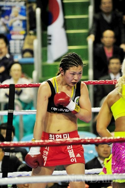이날 경기에서 챔피언 [최현미]가 도전자 샤론 오코넬(호주)을 맞아 심판판정 3대0으로 승리, [7차 방어전]에 성공했다.