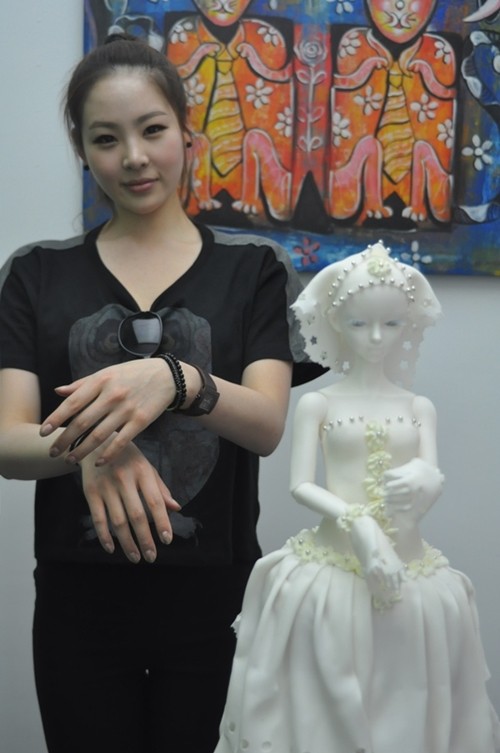 인형처럼 갸름하고 작은 얼굴, 전 리듬체조 선수로서 잘 가꾸어진 9등신 명품 몸매가 케이크 인형의 실루엣과 꼭 닮아 있으며, 무엇보다 센스 있는 포즈는 체조선수 출신다운 아름다운 자태를 뽐냈다.