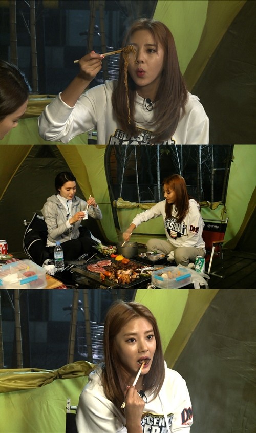 이날 캠핑 초보인 손담비와 가희는 직접 장을 본 재료들로 바비큐를 즐기던 중 “배가 찢어질 것 같다”고 괴로워하면서도 고기, 꼬치, 소시지 등 엄청난 양의 음식들을 먹어치우는 폭풍 먹방을 선보였다.