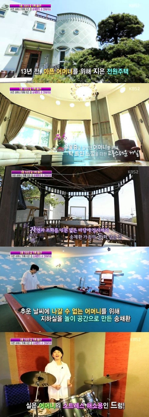 송채환은 우울증을 앓았던 어머니를 위해 밝은 빛이 들어오도록 거실 전체를 창으로 꾸몄다. 송채환 집 공개에 MC 조영구는 “그동안 수많은 스타들의 집을 봤지만 이렇게 효 인테리어를 한 곳은 처음이다”고 칭찬을 아끼지 않았다.