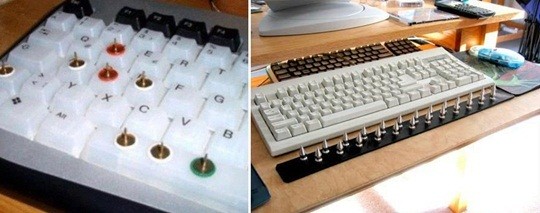 공개된 사진은 컴퓨터 키보드를 촬영한 것으로 키보드와 그 주변에 압정과 같은 뾰족한 물건들이 부착되어 있다. 보호장구 없이는 키보드를 사용할 수 없을 것으로 보인다. 이는 컴퓨터만 하는 아들을 위한 엄마의 긴급 조치인 것.