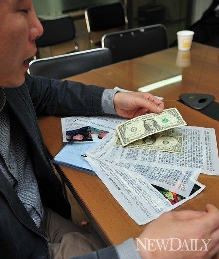 7일 기자와 인터뷰에서 [대북 전단]을 비롯해 [소책차], 그리고 [1달러 지폐]를 선물로 줬다.- 전단이라고 해서 봤는데 종이가 아니다.