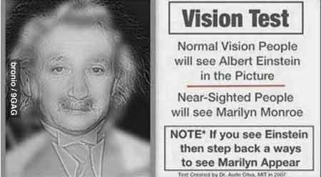공개된 [신기한 시력 테스트] 사진에는 아인슈타인을 닮은 한 남성의 얼굴이 담겨 있다. 게시자는 “이 그림이 아인슈타인으로 보이면 정상, 마를린 먼로로 보이면 근시다”라고 설명했다.