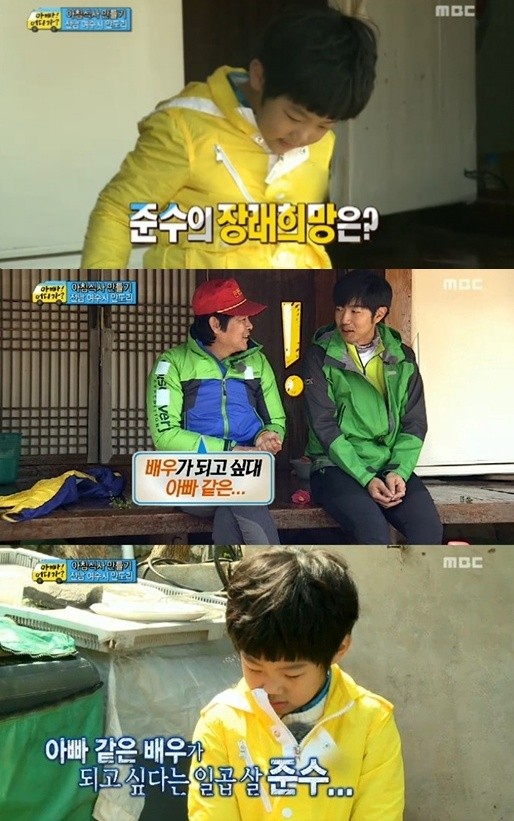 배우 이종혁의 아들 준수가 장래희망을 밝혔다.지난 12일 방송된 MBC <일밤-아빠 어디가>에서는 전남 여수의 섬 안도에서 1박 2일을 보내는 다섯 아빠와 아이들의 모습이 그려졌다.