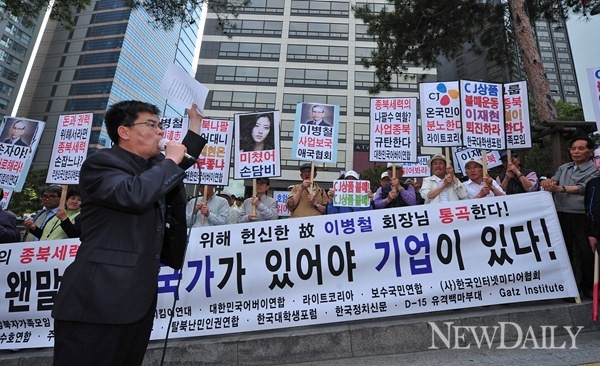 애국진영 단체들이 지난 9일에 이어 13일 오후 서울 중구 CJ본사 빌딩앞에서