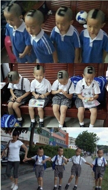 이 일란성 네쌍둥이는 중국 광둥성 선전시에 사는 탄씨가 낳은 남자 아이들이다. 어머니는 일란성 네쌍뚱이가 초등학교에 입학하기 전 다른 사람들이 헷갈리지 않도록 헤어스타일을 이 같이 다듬었다.