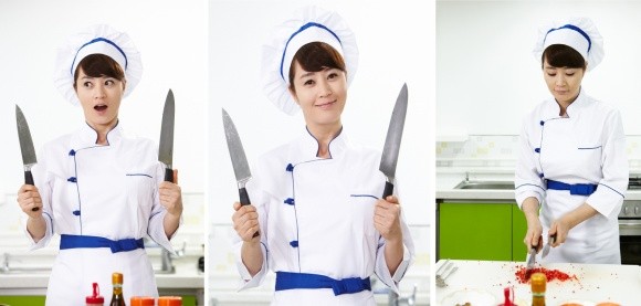 하얀 셰프 복이 특급 주방장을 연상케 할 정도로 자연스럽고 멋지게 어울리는 미스김의 쌍칼을 휘두르는 폼도 수준급이다. 어떤 재료든 척척 다듬는 그녀, 그녀의 손을 거친 요리는 모두 명품 요리로 탈바꿈한다.