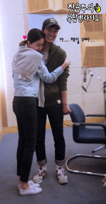 게재된 사진 속에는 장윤주가 라디오 게스트로 출연한 박해일을 꼭 끌어안고 행복한 표정을 짓고 있다. 특히, “아.. 해일 오빠...”라는 적절한 멘트까지 달아 웃음을 자아낸다.