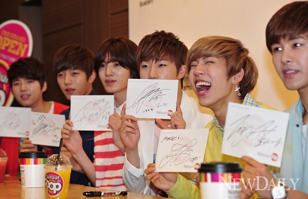 15일 오전 서울 마포구 나뚜루팝 홍대역점에서 인피니트 팬미팅 행사가 진행됐다.이날 행사에는 인피니트(성규, 동우, 우현, 호야, 성열, 엘, 성종) 멤버 전원이 참석해 팬들과 즐거운 시간을 가졌다.이번 팬미팅은 아이스크림 전문점 나뚜루팝이 인피니트 팬 30명을 초청해 인피니트와 함께 아이스크림을 함께 즐기는 시간을 준비했다.