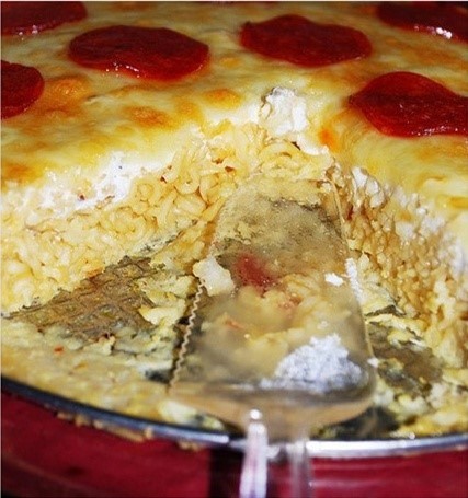 공개된 사진 속에는 두꺼운 치즈 아래 도우가 라면으로 이뤄져 있는 페페로니 라면 피자의 모습이 담겨 있다. 이 피자는 지난 2008년 뉴욕에 있는 주방용품점 <브루클린 키친>이 개최한 라면 요리 대회에서 심사위원상을 받았다.