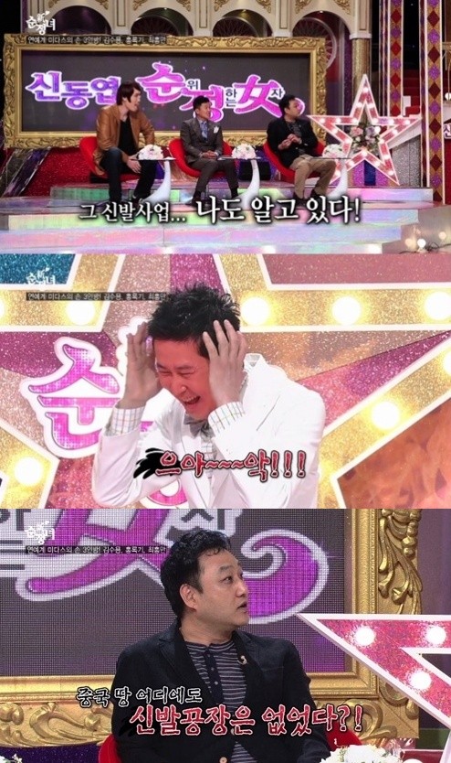 이날 게스트로 출연한 개그맨 김수용은 “내가 아는 지인이 신동엽과 함께 신발 사업에 투자했었다”고 폭로했고, 이 말에 신동엽은 얼굴이 빨개지며 당황하는 모습을 보였다.