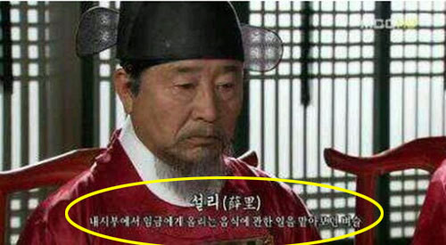 공개된 사진에는 조선시대 관복을 입고 있는 한 남성의 모습과 사진 [설리]라는 내용이 캡처돼 있다. [설리]는 내시부에서 임금에게 올리는 음식에 관한 일을 맡아보던 벼슬이라는 뜻이다.