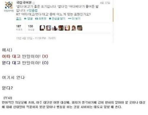 또한, 이에 대한 예시 글로 “어따 대고 반말이야!”(X)와 “얻다 대고 반말이야!”(O) 등 맞는 표현을 활용한 문장이 네티즌들의 관심을 모았다.