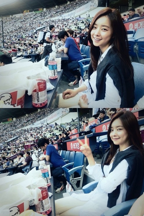 (홍수아 야구장 사진=홍수아 트위터)