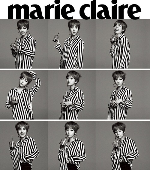 한지민은 최근 패션매거진 <마리끌레르>가 진행한 화보 촬영에서 파격적인 오렌지 컬러 숏커트 헤어와 과감한 스모키 메이크업을 선보여 눈길을 끌었다.