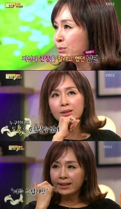 이날 박해미는 “남편에게 감동받은 적이 있냐”는 MC의 질문에 “12년 전 쯤에 남편이 신장을 팔겠다고 한 적이 있다”고 말문을 열었다.