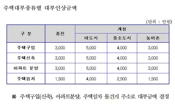 앞으로 광역시 이상 대도시는 6,000만 원, 중소도시는 4,000만 원을 대출받을 수 있다.