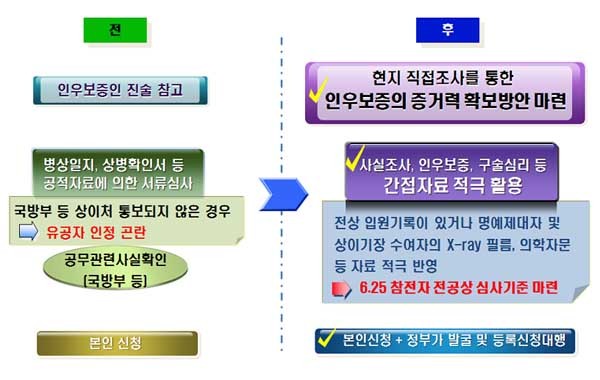 신청인과 전우들의 진술이 일치하면 보훈심사위원회 심층심사를 통해 인정할 수 있도록 했다. -