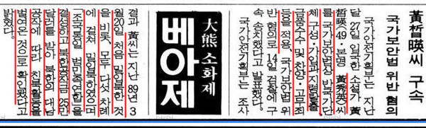 사진출처: 1989년 5월2일자 <동아일보> 보도 캡처황석영: 다섯 차례 入北, 일곱 차례 김일성 만나