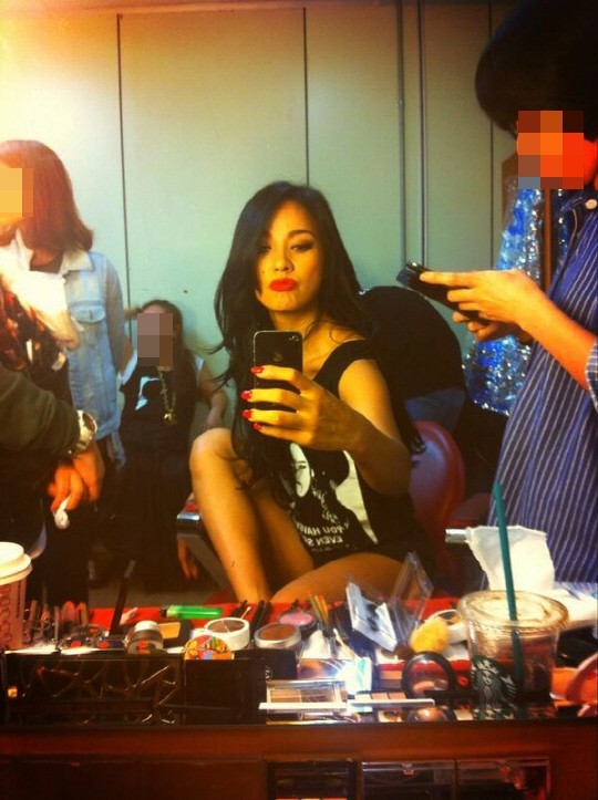 공개된 사진 속 이효리는 민소매 티셔츠에 짧은 하의를 입은 채 <뮤직뱅크> 대기실에 앉아 거울에 비친 자신의 모습을 휴대전화로 찍고 있다. 특히, 짙은 스모키 화장과 붉은색 입술로 포인트를 준 그녀는 도발적인 표정과 과감한 포즈로 아찔한 매력을 뽐냈다.