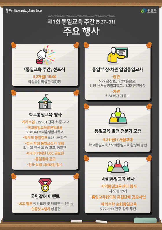 27∼31일까지 제1회 [통일교육 주간] 행사를 벌인다.주제는 [통일은 우리의 미래, 우리의 희망]이다.